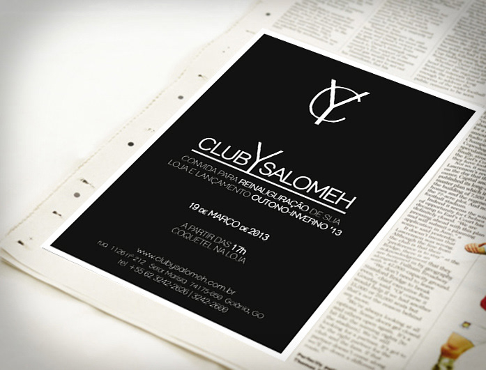 Trabalho de branding (desenvolvimento logomarca/identidade) e direção de arte para a loja ClubYSalomeh.