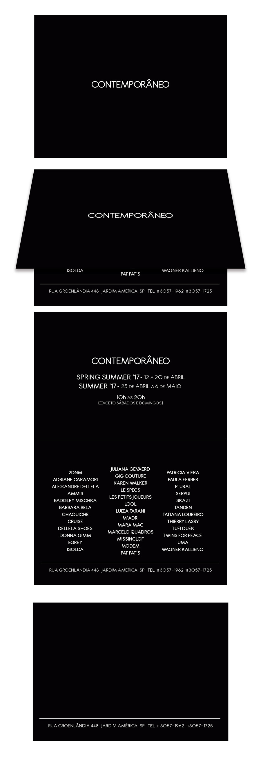 Trabalho de branding (desenvolvimento logomarca/identidade) e direção de arte para o Contemporâneo Showroom.