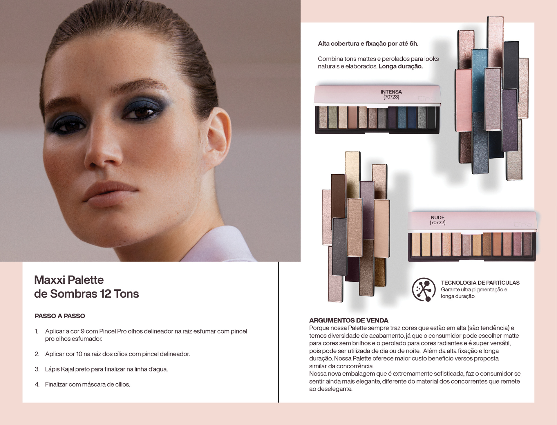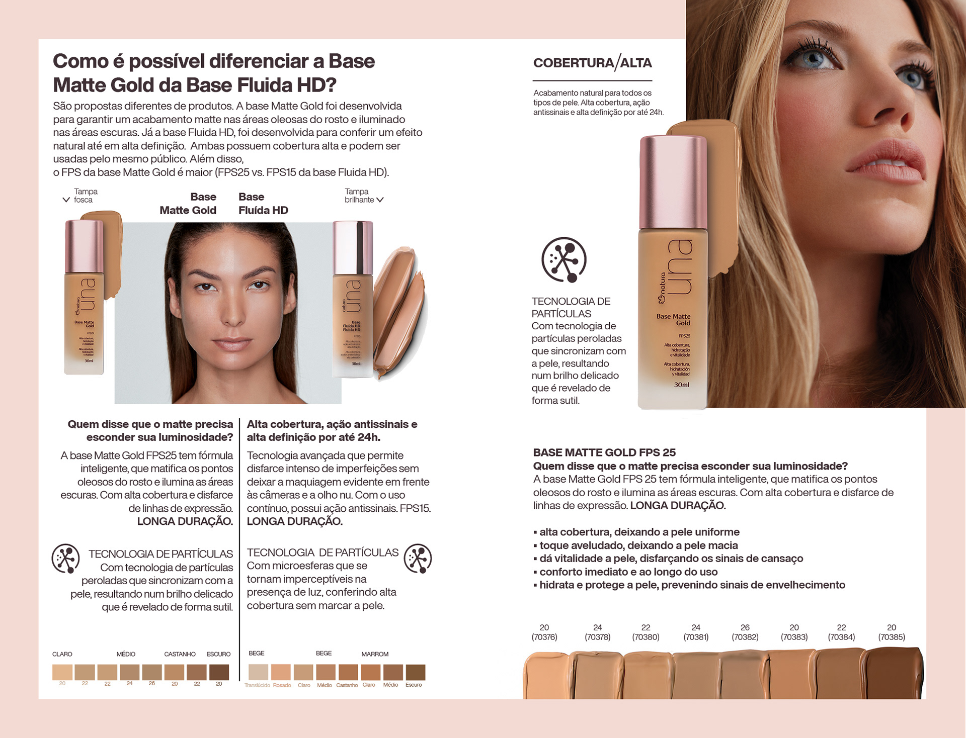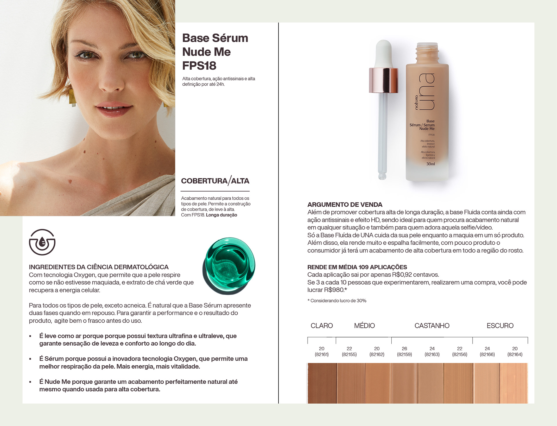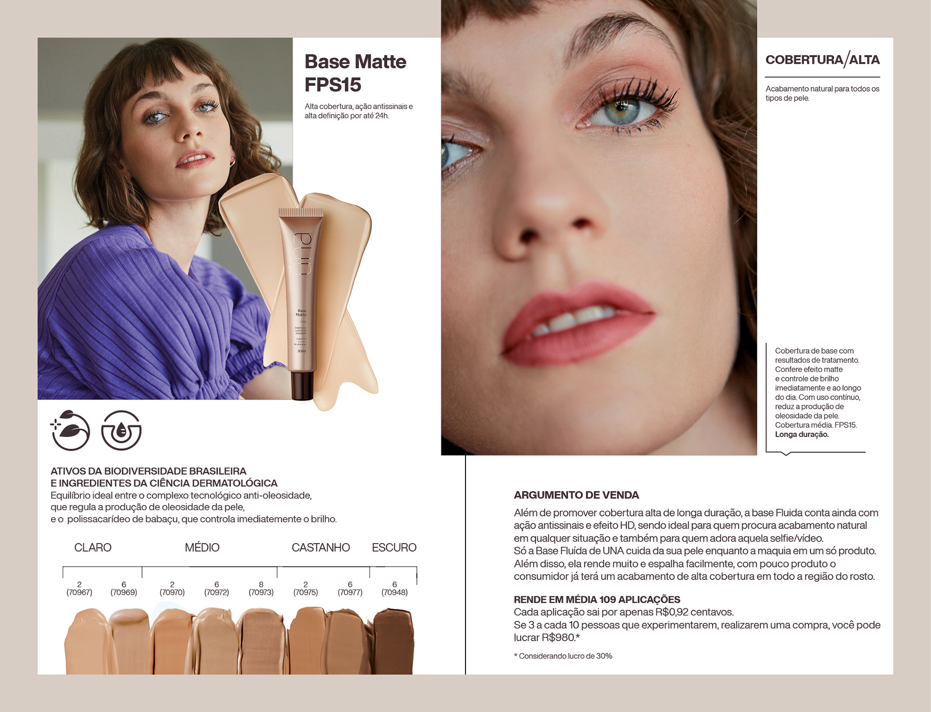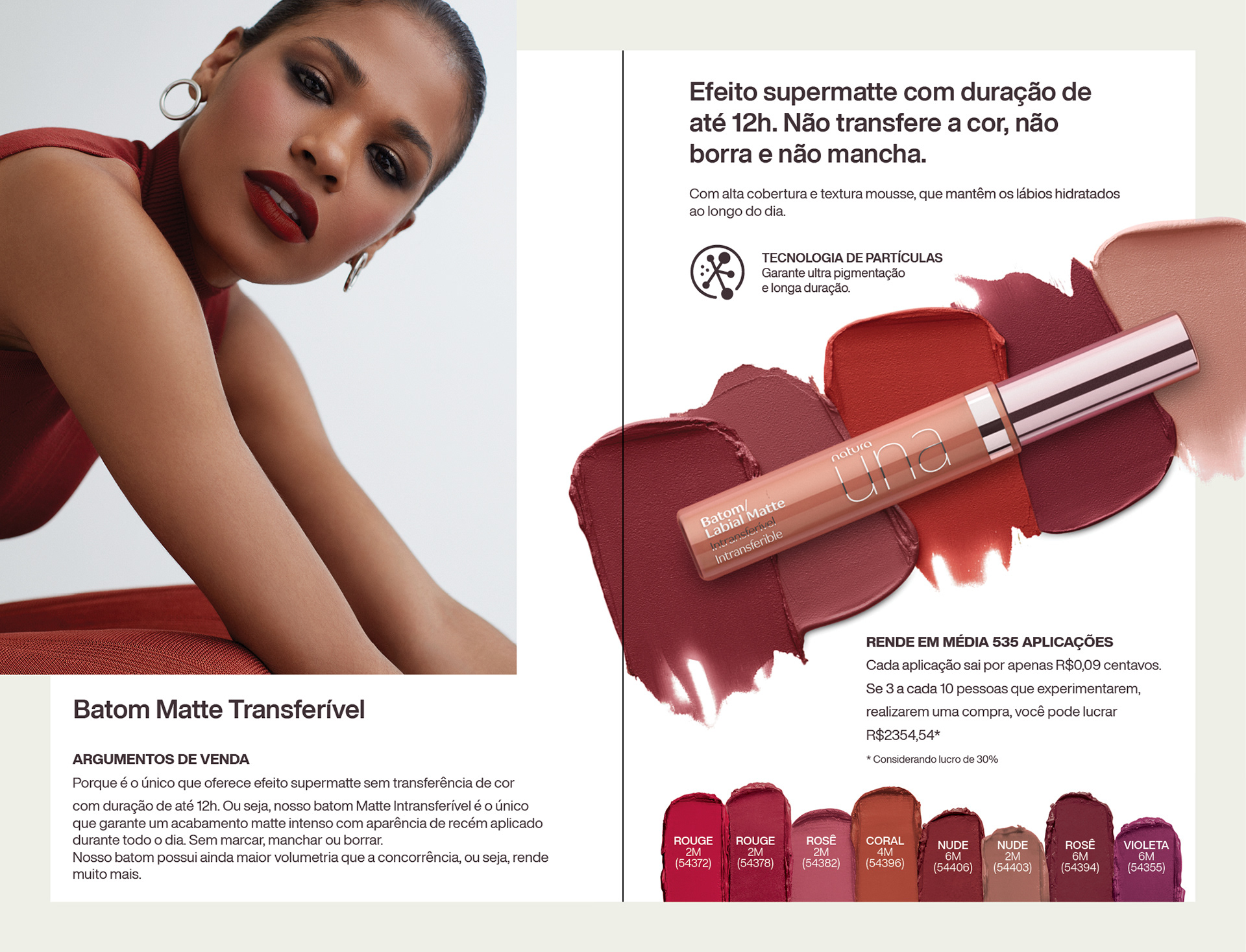 Direção de arte, diagramação e finalização para folheto do lançamento da linha UNA de maquiagens.